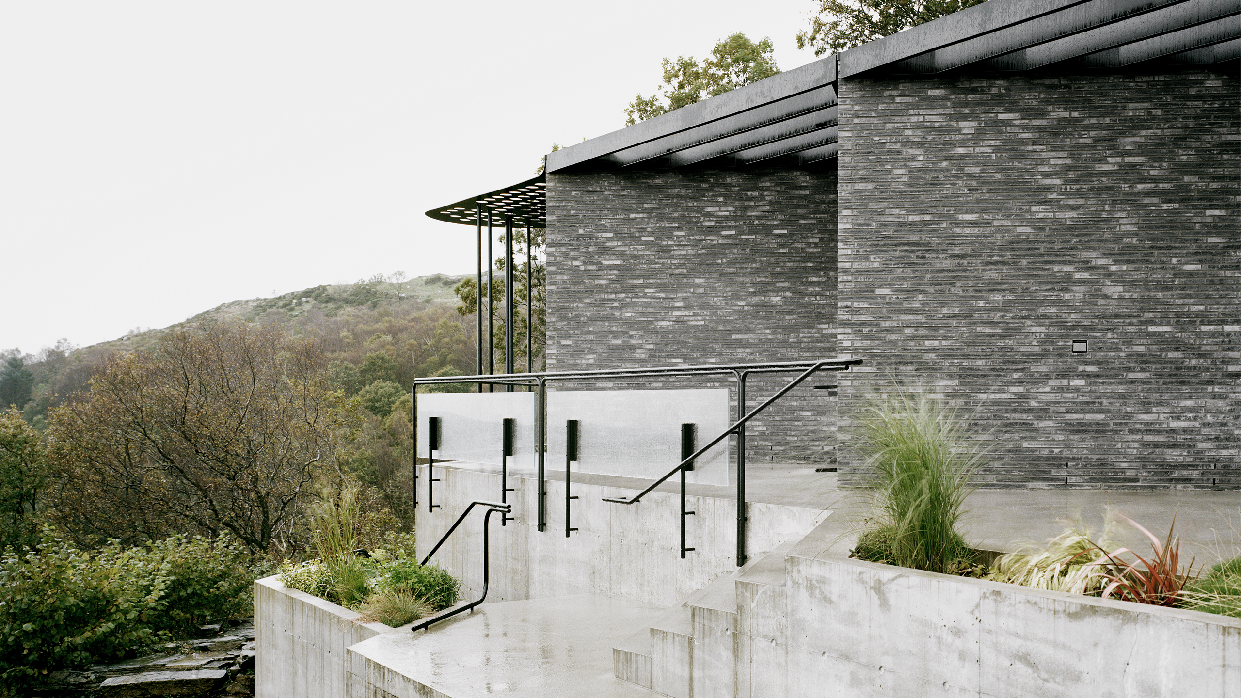 Vacation house is built as a complete house for permanent living, at the isle of Rennesøy, in Ryfylke outside Stavanger. The project is placed in a restricted heritage landscape-area where trees and rock formations has been taken care of during planning and building. Several year old horizontal sedimental rock formations is brought in to the house trough large openings in the facades. The rock formations have also led to use of a horizontal gray brick in all bearing walls in the house. The rooms and functions are all organized according to a grid of 3.5 X 3.5m that also organizes the bearing structure. Quite departments, with bedrooms and baths, are organized in each end of the house, while social common rooms are located in the middle.